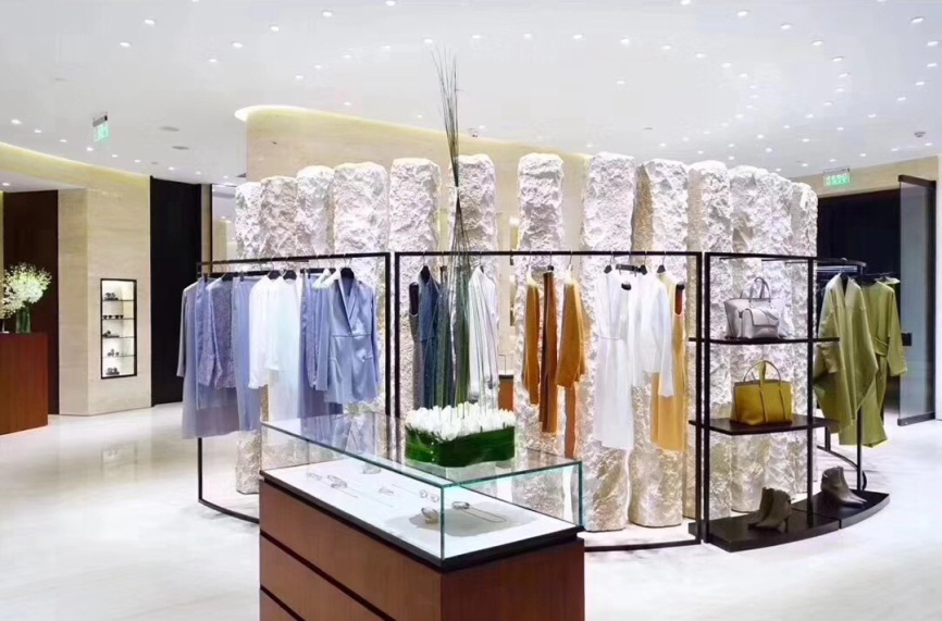 为了保证作品的效果,上海静安嘉里中心的精品店所用的石材均由意大利2000 米高的阿尔卑斯山区的梵尔卡莫妮卡石灰石铺陈打造。
