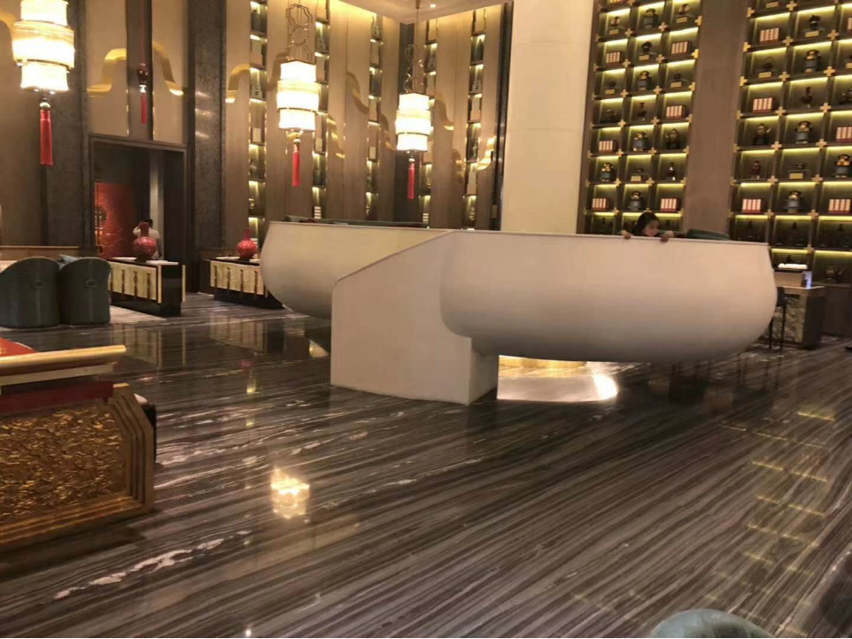 通常,灰色大理石因为降低了色彩饱和度,削弱了色彩对人的视觉冲击而显得低调雅致,但这款灰色大理石却在平静的情绪中传递出惊心动魄的能量,如月夜江涌,惊涛拍岸。