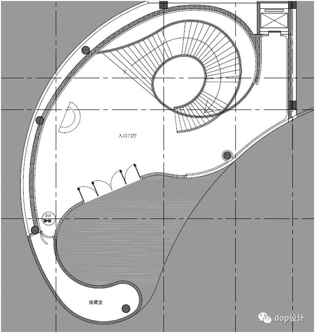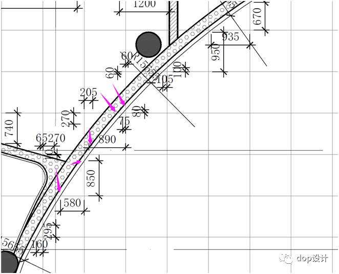 以上这种弧形墙体,建筑是不可能用砌块墙砌筑的,只能是以钢架作为基础做完成面。所以只要定位了完成面线,就完事大吉了。因此根本不需要隔墙尺寸图,只有完成面定位图。