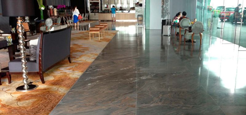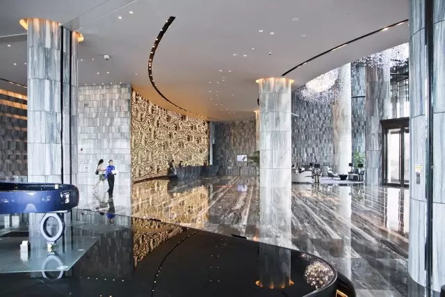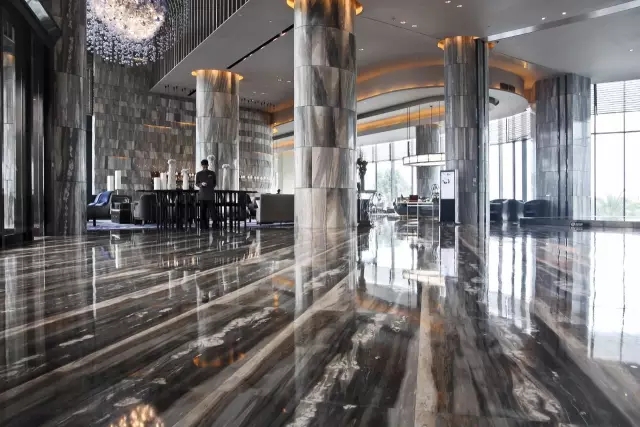 今天我们就和大家一起来欣赏一下蓝金沙石材在五星级酒店里的呈现效果。