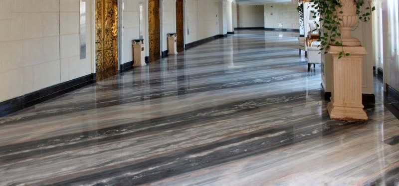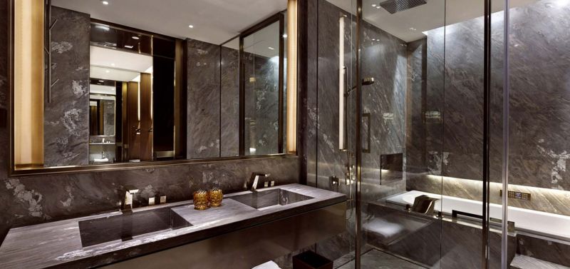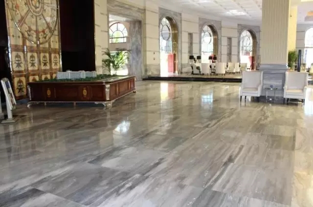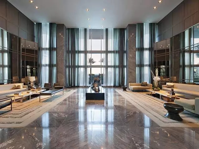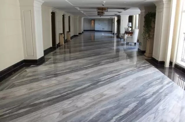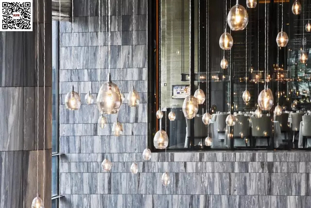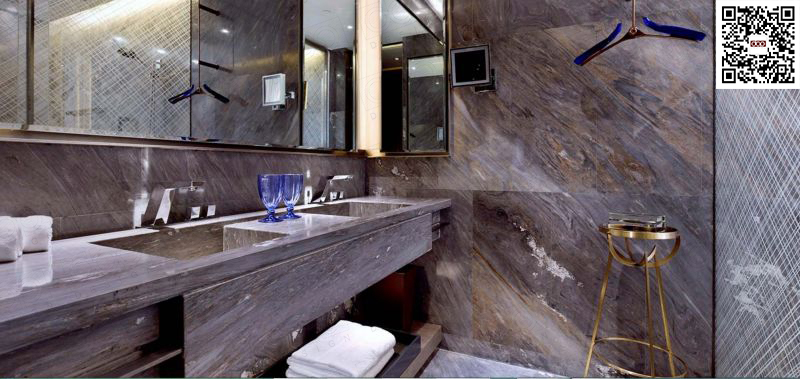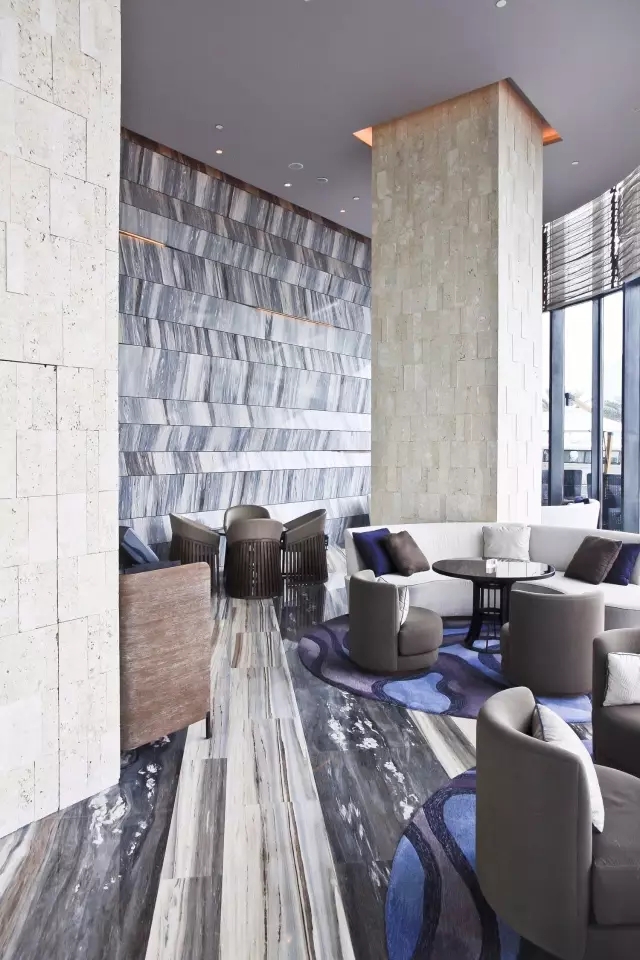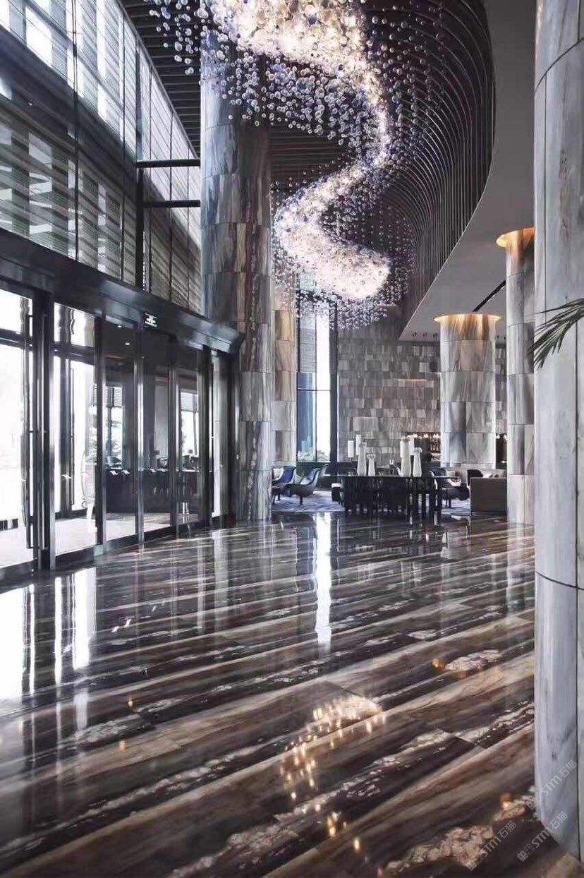 最近几年,随着黑白灰色的流行,蓝金沙这种灰中偏蓝的大纹理石材受到了市场尤其是高端酒店项目的喜爱,下面让我们看看这些项目的实景照片。
