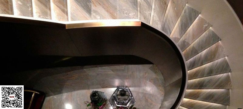 深蓝色石材与家具,灯饰搭配,达到平和、稳重、大方的色彩效果,呈现出和谐、统一、高雅庄重的室内空间心理印象。