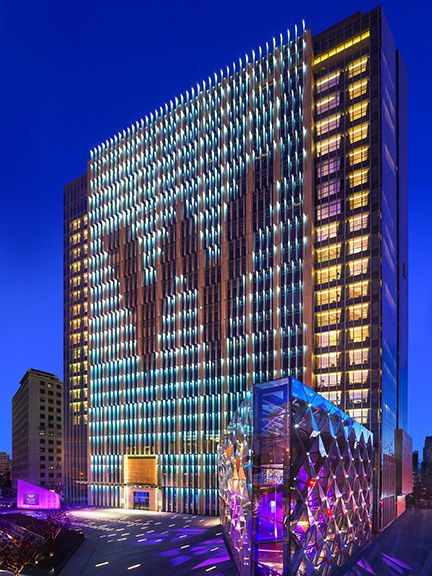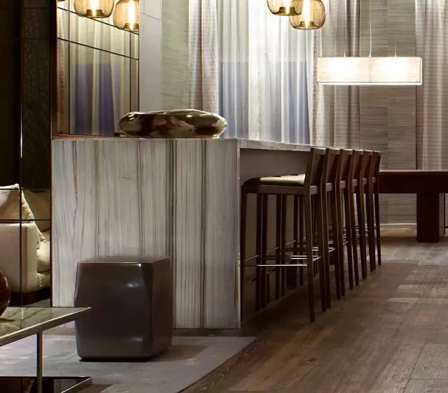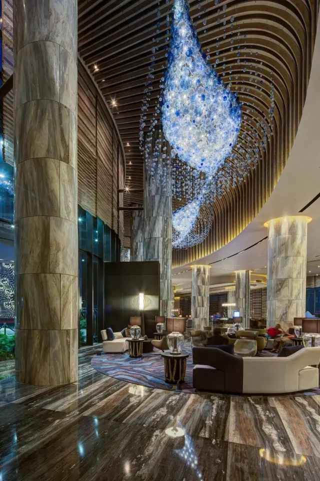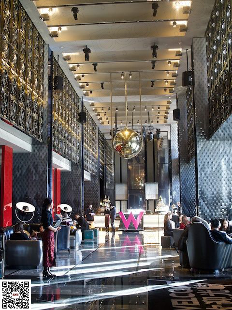 走进北京长安街W酒店,可随处体验酒店内充满时尚、音乐和设计感的入住氛围:首先映入眼帘的是石材蓝金沙的使用,地面、洗手间及旋梯随处可见,首层大堂石材蓝金沙铺就,加以透光效果的T台式走廊、3D效果吊灯营造出的魔幻般光影世界。