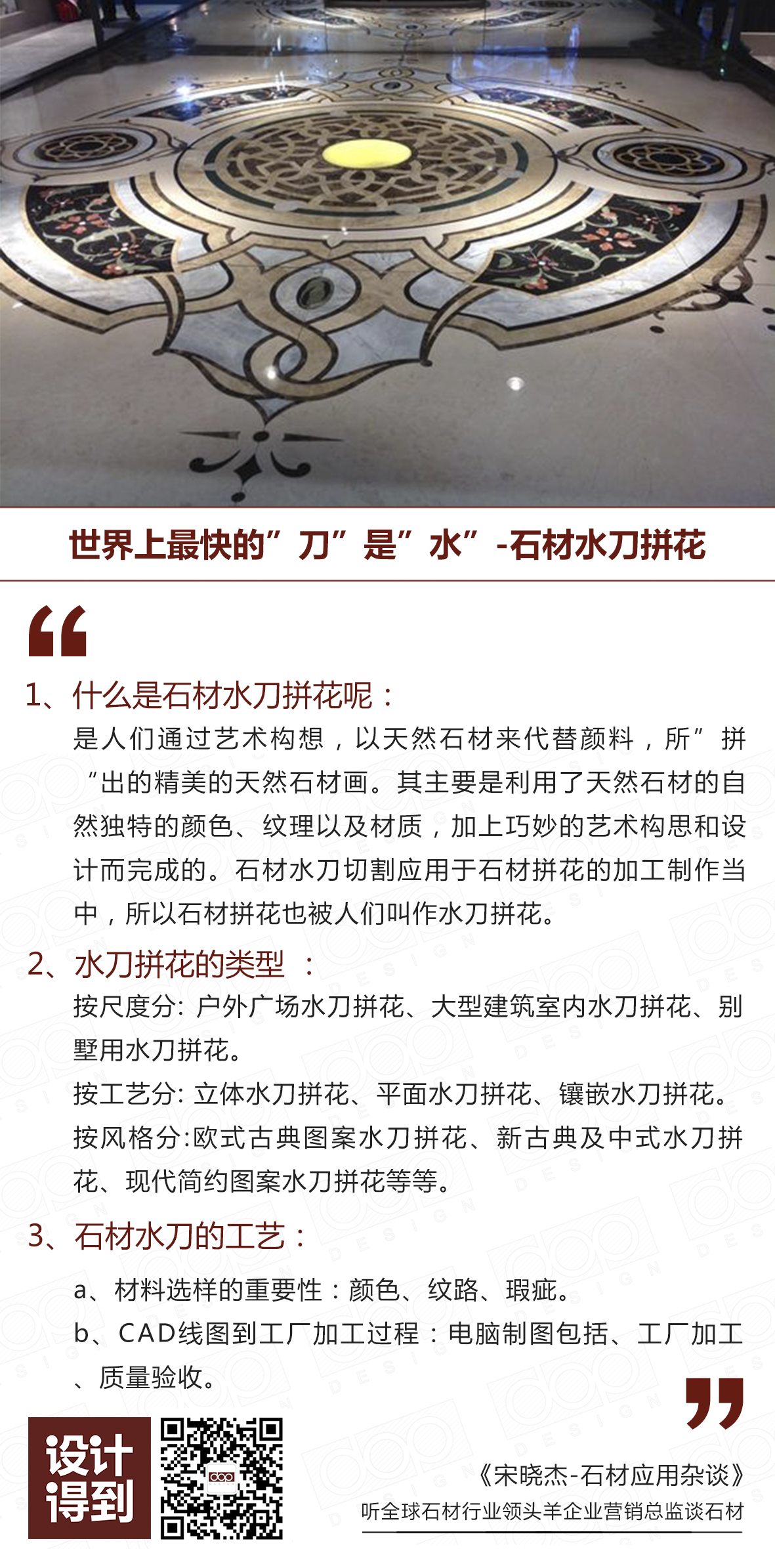 本期我们就来深入的聊聊石材水刀拼花的那些事儿。