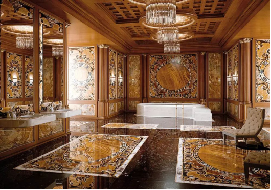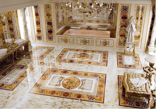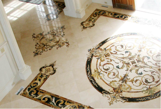 古往今来,人类的伟大建筑都离不开石材的印记,因为美是源自天然的艺术,如今,随着我们生活水平的不断提高,天然石材作为装饰装修的主要材料,越来越多地进入千家万户,而石材水刀拼花以其富丽堂皇,华贵逼人的特质,也越来越多地为建筑设计师喜爱,成为别墅,豪宅不可或缺的顶级元素。