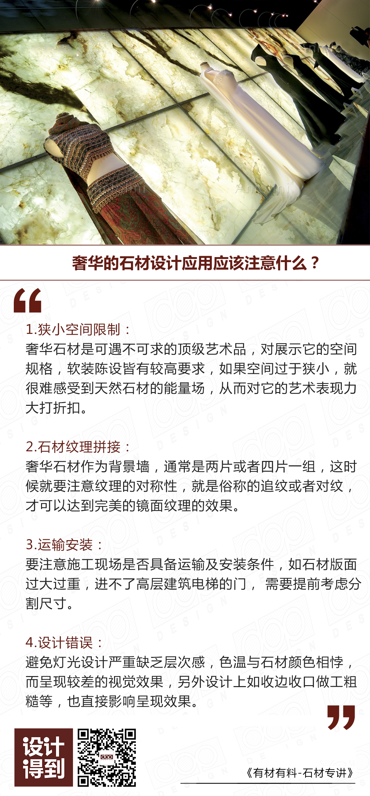 作为室内设计师来说,我们在运用这些顶级的石材作为选材时,一定要避免出现以下几个因素,影响石材展示效果: