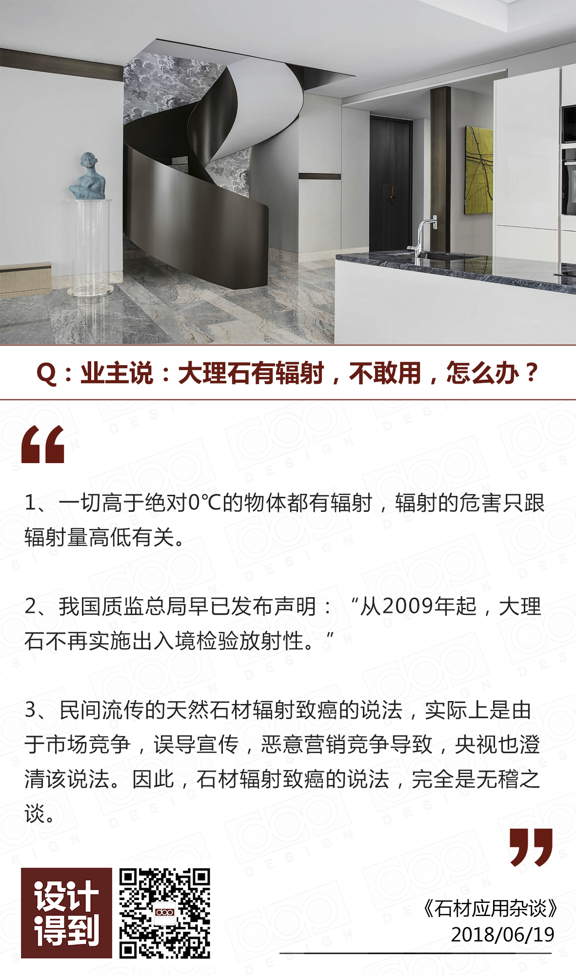 所以,看完本期内容后,如果业主有在为石材辐射的事情担忧,那么,你可以这样告诉他:
