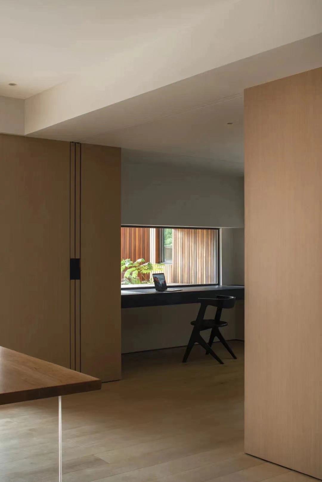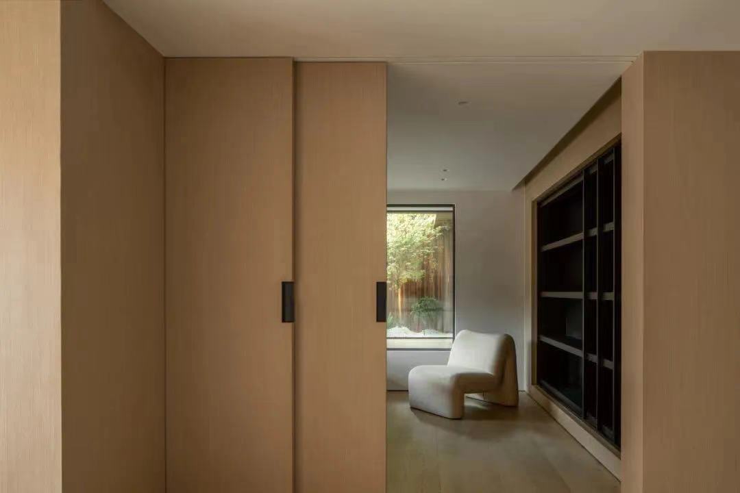 口袋门可完全隐藏在墙体内,灵活分隔空间,既可以呈现封闭的状态,又可以是半开放的形式,同时满足功能性和装饰性,可适用于书房、办公区、衣帽间。