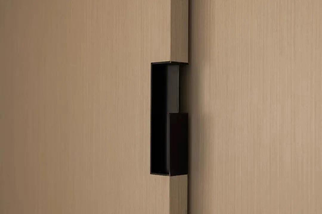 c、为了推拉方便,可以在墙里安装反弹器,比墙缝少留2公分,全开后门板露在墙外一部分好看,或者定制G形拉手,相比门内反弹器、反弹拉手,G形执手保证移门的使用一步到位,不需要多余动作。