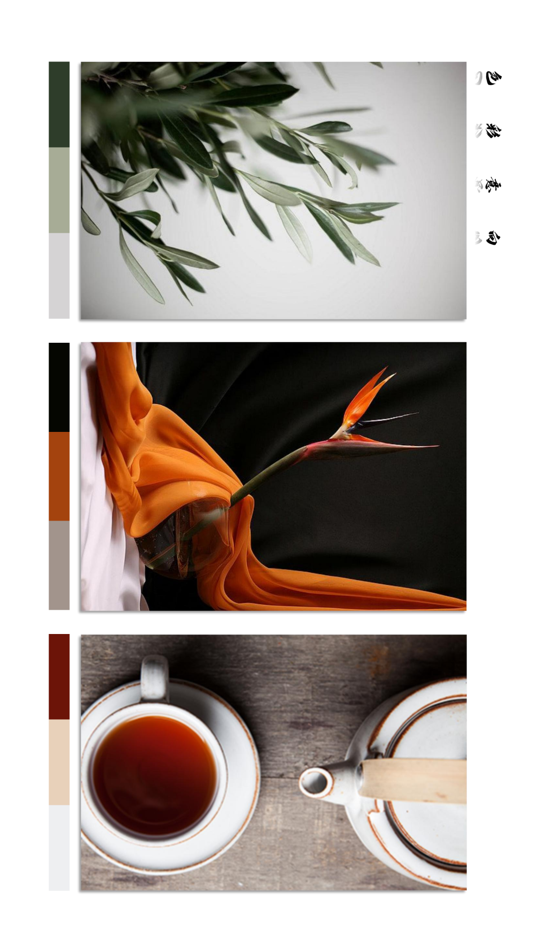 整体为浊色基调,选用了充满自然的绿色和对生活充满热情的橙色。