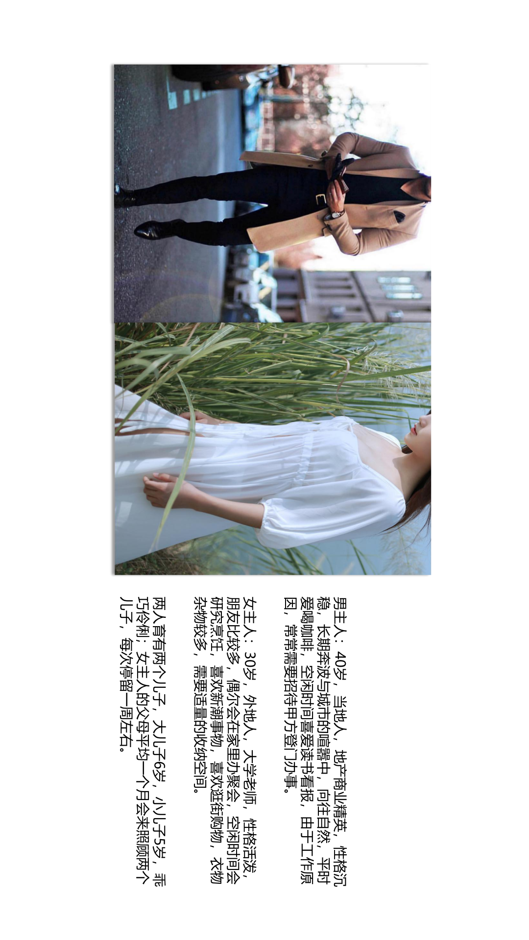 女主人是30岁的大学老师,性格活泼外向,朋友颇多,时常邀请三五好友到家中聚会或研究烹饪等,喜欢新潮事物,平时打理家庭较多对家中需要。父母偶尔会过来帮忙照顾两个小朋友。