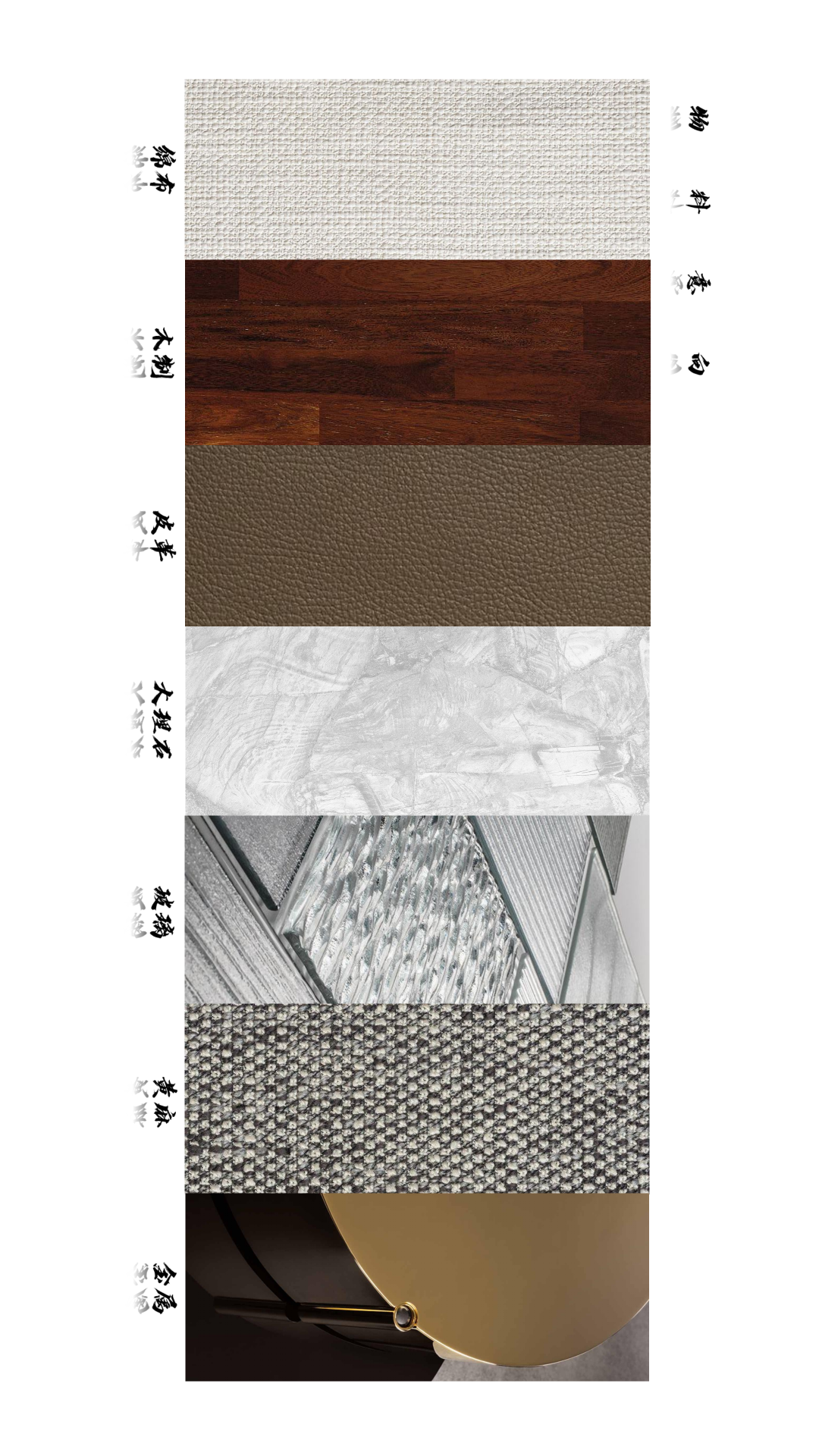选用了相对较为温暖的材料,也与硬装的硬感氛围做了一个调节、互补,让空间更舒适,增加一种平衡感、饱满感、生机感。