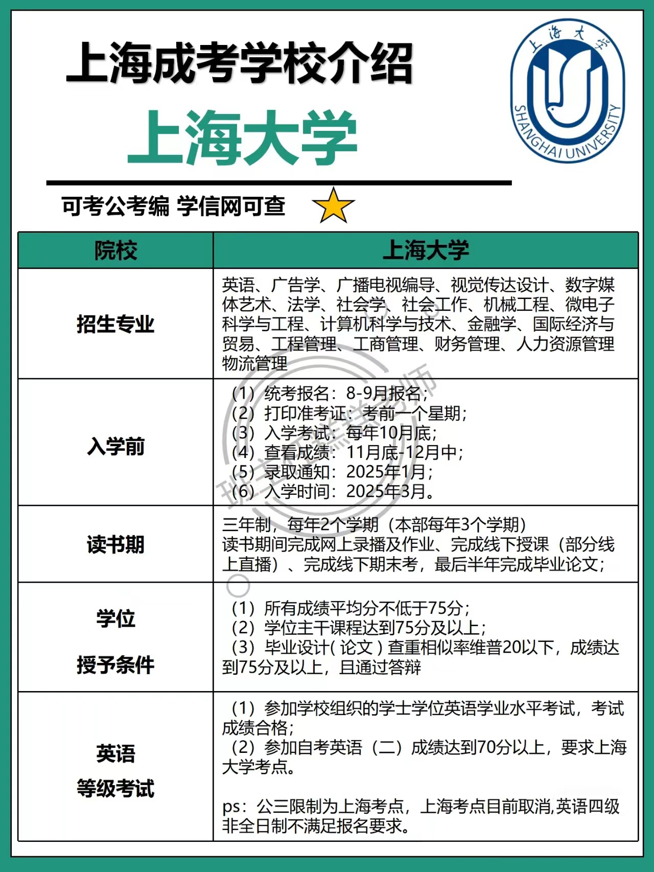 (2) 参加自考英语(二)成绩达到70分以上,要求上海大学考点。