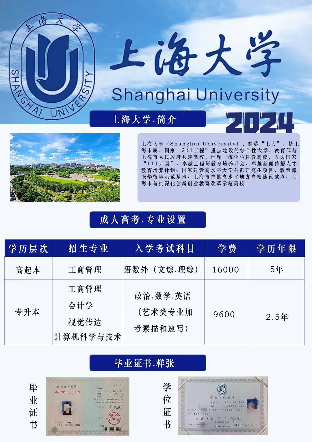 上海大学丨成人教育招生介绍 专业学位