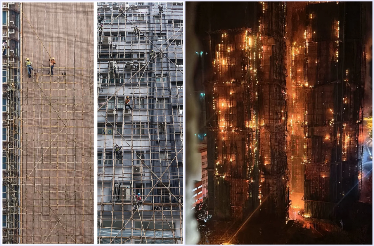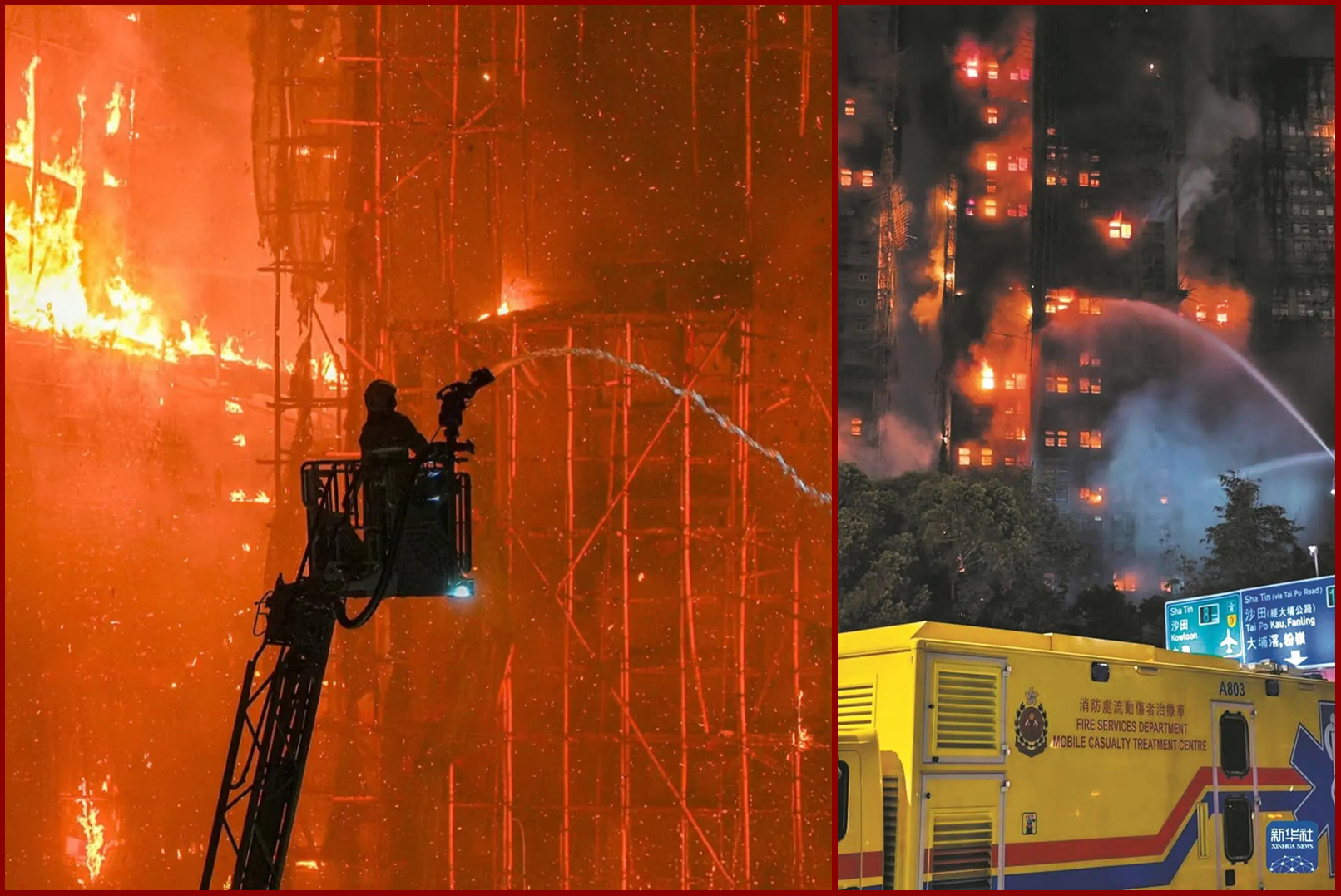 2025年11月26日香港大埔宏福苑的五级火警。目前已致44人遇难,其中有消防人员在执行职务时殉职,8幢楼宇受损的悲剧。