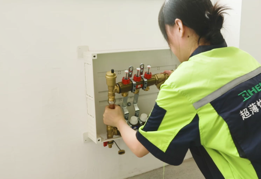 连接安装温控面板及热源(加热用的挂壁炉)等设备,壁挂炉是供暖的热源,需要规范安装并仔细检查。在调试验收合格后,做好施工现场的清理工作。