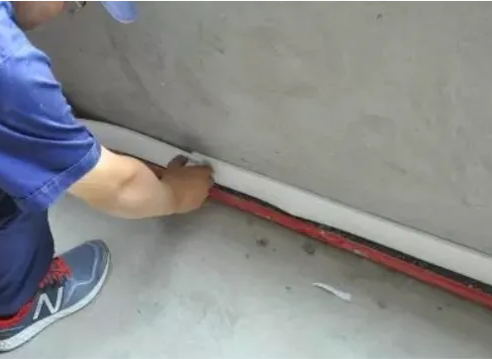 铺设好之后用塑料卡钉将地暖管固定在保温板上。当房间的跨度或面积较大时,需根据规范要求设置地面伸缩缝。