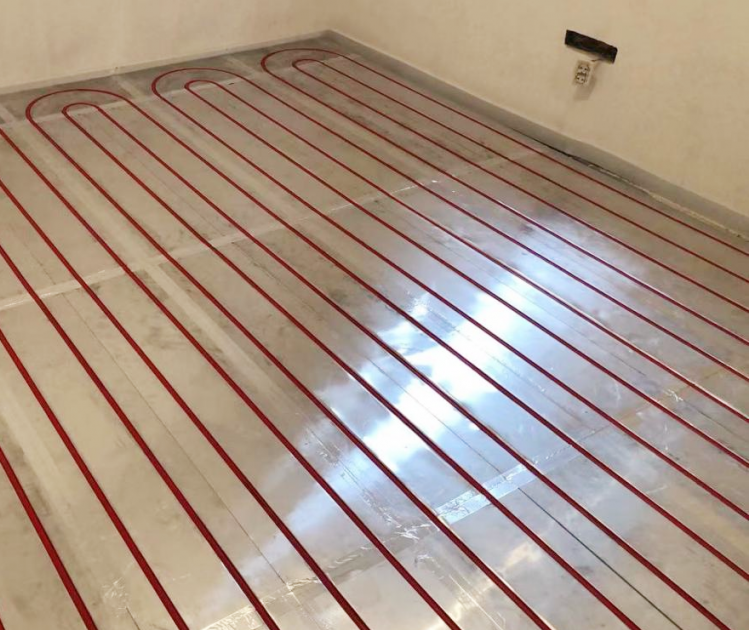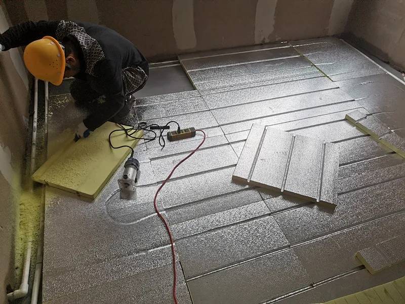 反射膜须紧贴保温板,铺设反射膜的作用是阻止地暖管热量向下辐射(即辐射传导)。