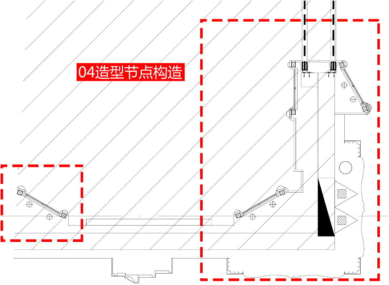 04 处可以看到在完成面里面还有细部的钢结构节点等,在我们的平面布置图中是完全没有必要的,完全可以在索引在放大图中进行表达。