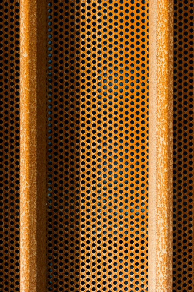 穿孔耐侯锈钢板使建筑看起来更为轻透,设计师采用了折弯方式增加材料本身的强度,从而省去了支撑的龙骨系统。