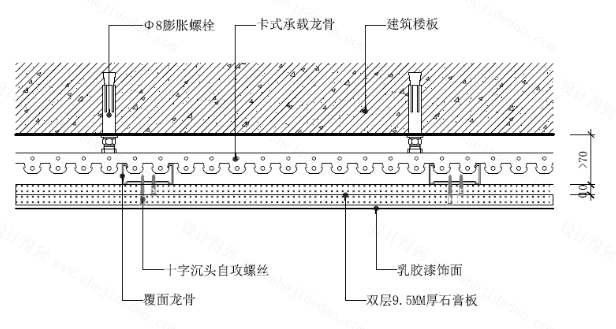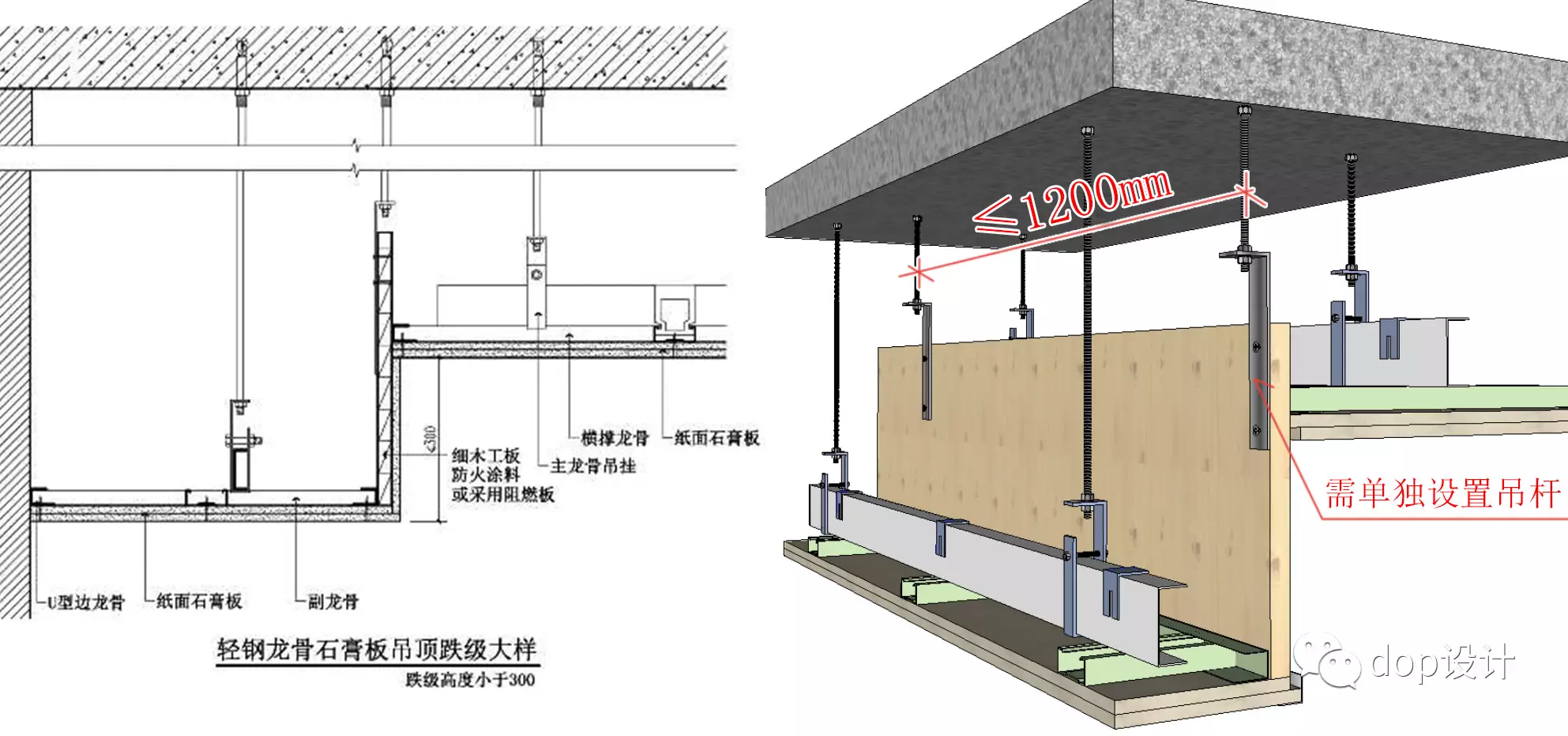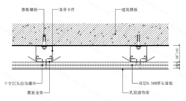 3、"轻钢龙骨+石膏板"吊顶具体做法