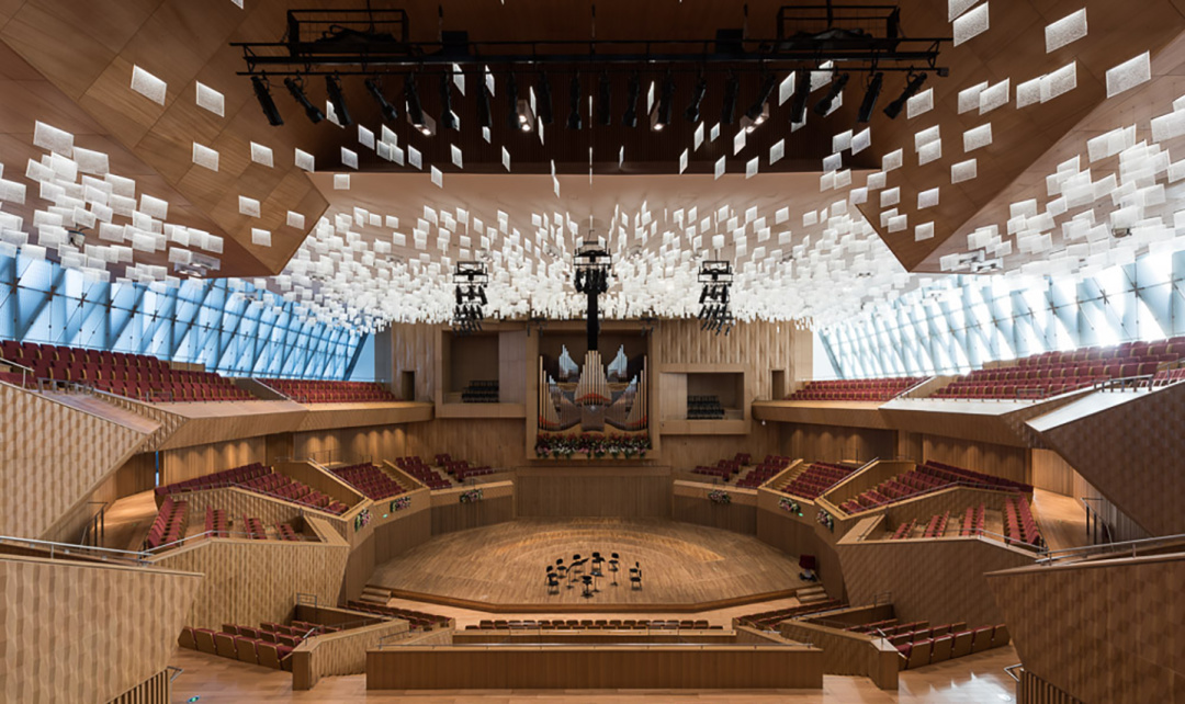 如果在音乐厅和体育场等特殊空间,天花设计则会有特别的吸音造型,还需要结合声学顾问对天花设计做出分析。