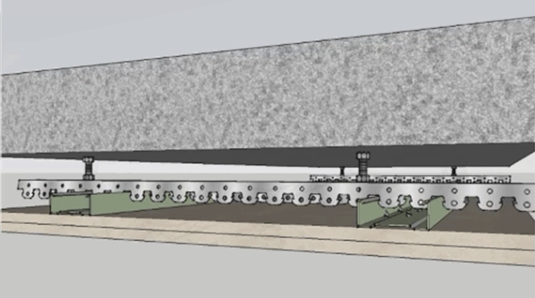 依次安装副龙骨及横撑龙骨,副龙骨间距一般为400mm,横撑龙骨为600mm,副龙骨挂件也需要依次正反安装,消除受力变形。