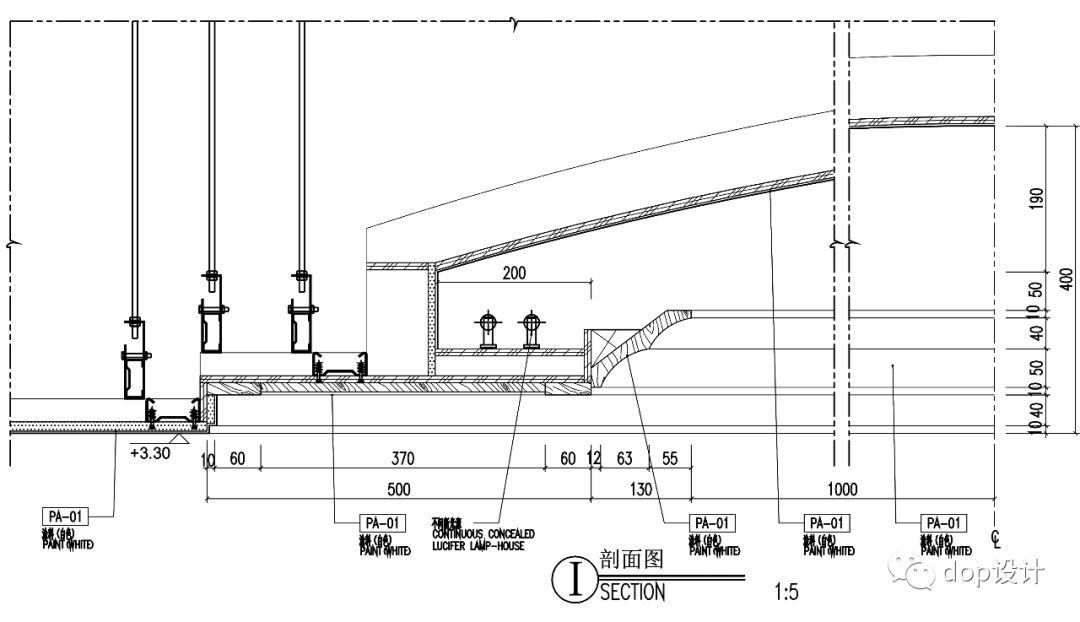 隐藏顶面的复杂管线和突出的梁,使顶面看起来形成一个整体。