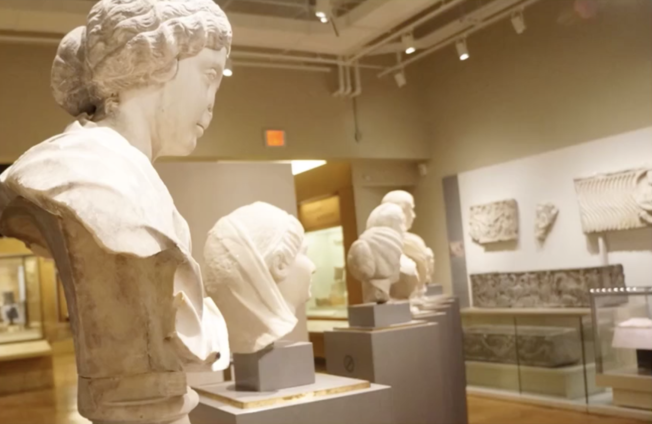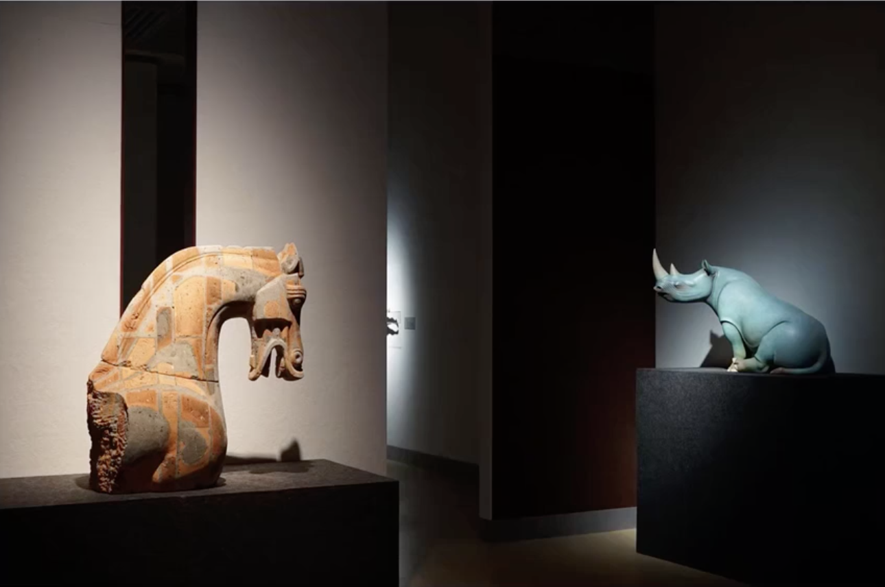 比如图中的雕塑,采用的就是45度角正上方投射的重点照明。
