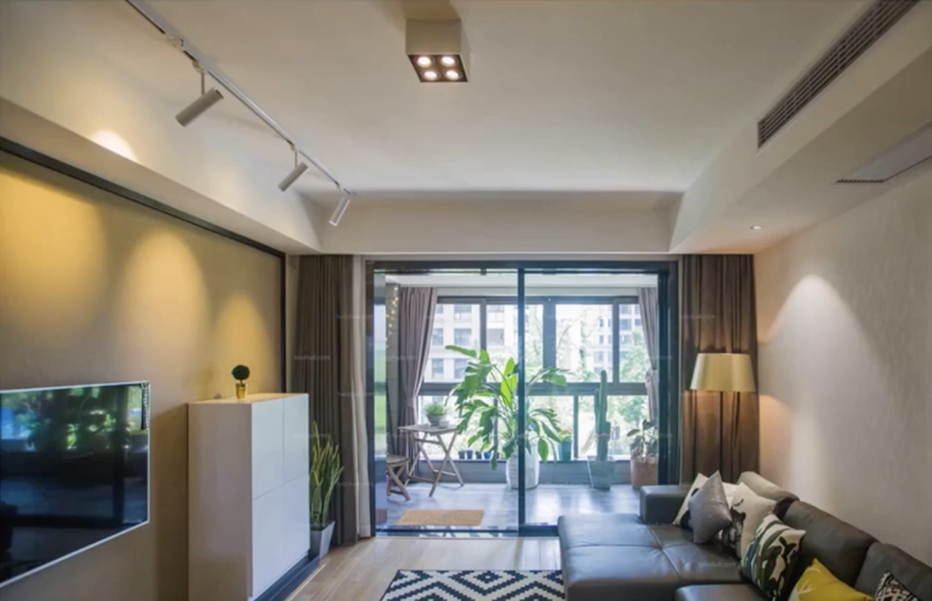 我们更应该考虑灯光存在的目的,比如顶面轨道射灯的角度与位置并没有达到照亮电视墙的目的,在沙发区的嵌入式射灯,没有艺术品和装饰画,那它存在的目的是什么??