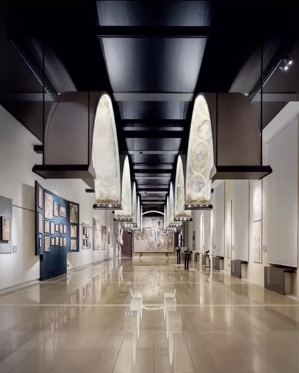 比如图片中的穹顶非常吸引眼球,通过在弧形顶的末端安装向上投射洗墙灯,把暗藏在内部的壁画均匀的照亮,空间的气质被完美的表达出来了。