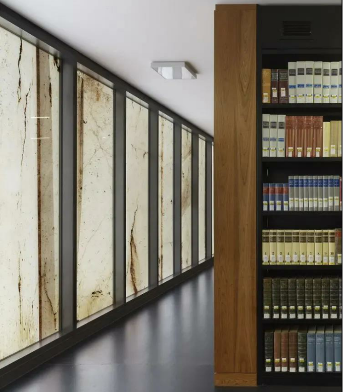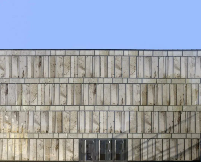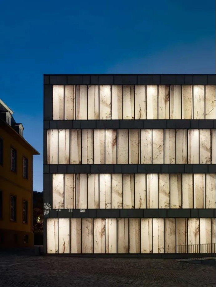 白天可展现天然石材的独特纹理和质感,夜间通过室内灯光也能显现更加细腻的石材纹理脉络。