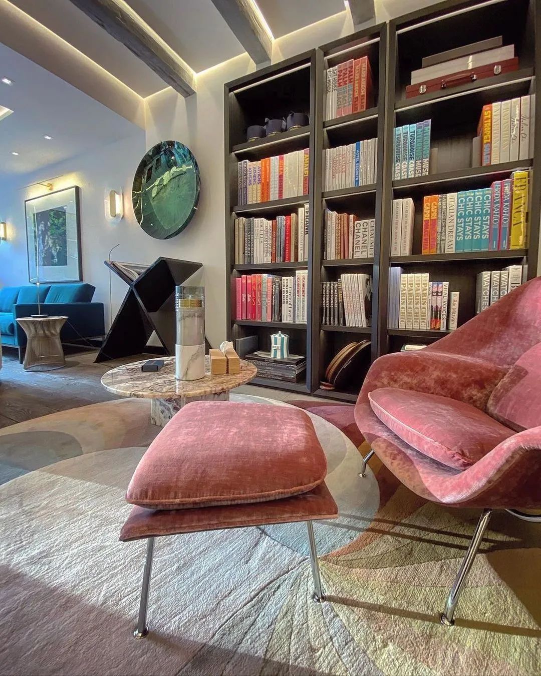 羊绒面料的子宫椅搭配羊绒地毯,毛茸茸的视觉冲击,让整个空间都温暖起来。