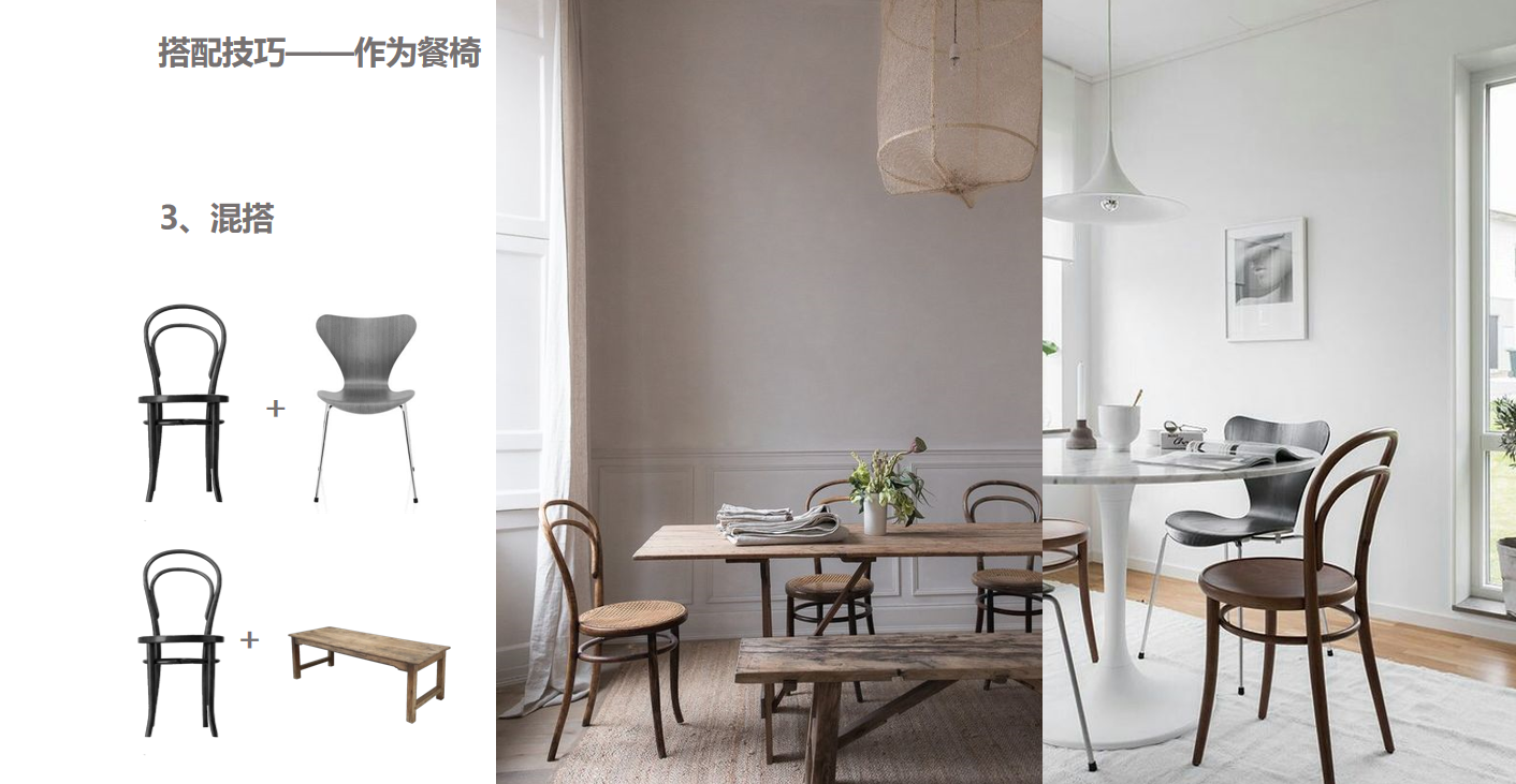 △索奈特椅与3107蚂蚁椅混搭作为餐椅