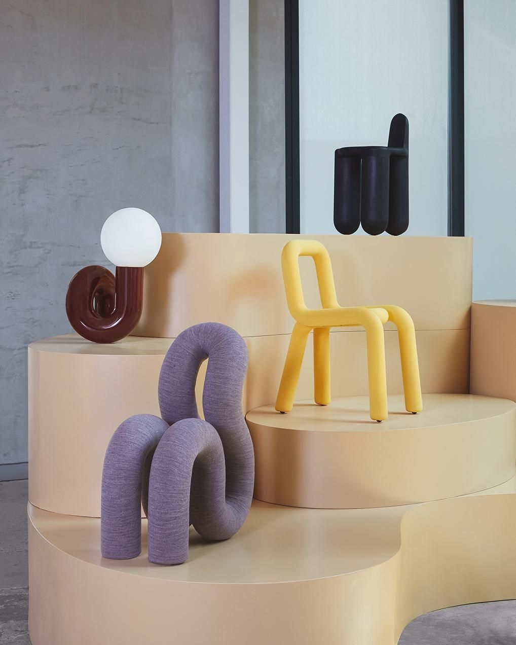 过于强烈的造型和热情色彩的非典型椅子,想要组队尽量不要超过3个;或者就是在色彩上做减法,选择不跳跃的颜色。