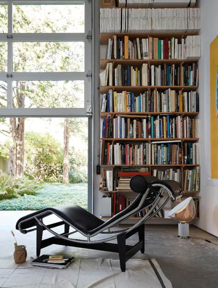 LC4躺椅可以摆放在书房,看书累了小憩一会儿,其全黑的搭配可以中和书籍的五颜六色,彰显空间的气场。