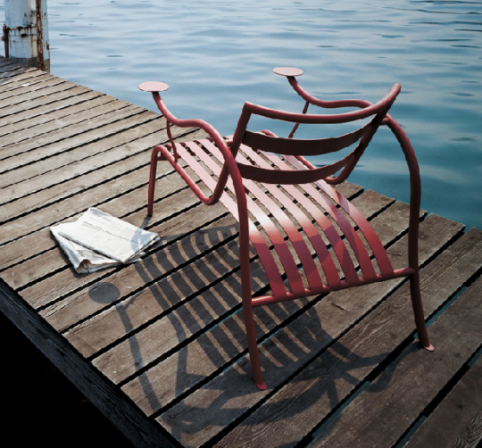 这张椅子用流体钢管打造的主结构,舒展的悬臂、弯曲的椅背。