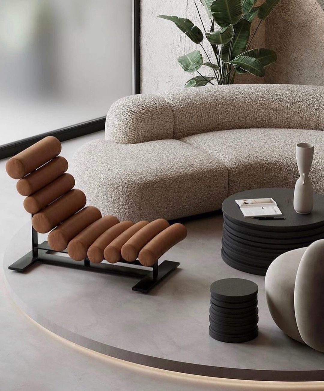 周宸宸的这款休闲椅,清晰的轮廓线条下蕴含着独特的张力。进口羊毛及真皮面料的搭配,彰显出层次分明的高级触感。