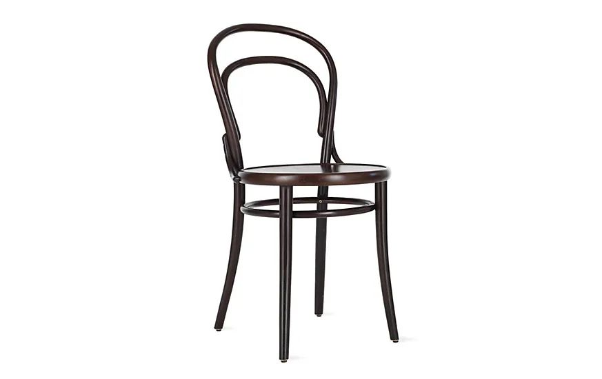 1842年,Michael Thonet发明了热弯曲工艺。1859年,他利用当时的技术,设计出一款仅由6个部分组成,能够量产并且平板包装的座椅。专供咖啡馆使用,成为了当时咖啡店的流量款。