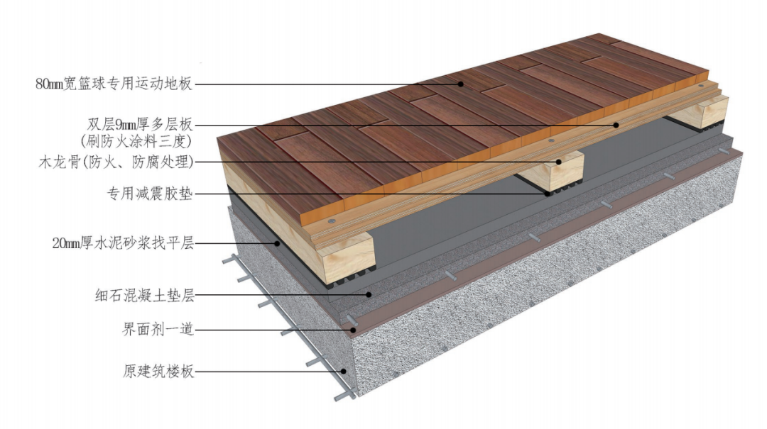 常见的类型有实木地板地面、复合地板地面、篮球专用运动地板地面等。