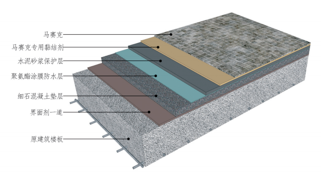 施工准备→基层处理→贴灰饼、做冲筋→弹线分格→湿润基层→铺贴马赛克→调缝擦缝→清理整理