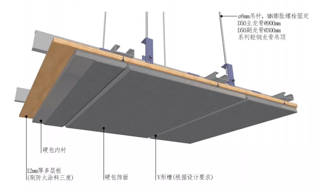 通常在实际工程中,90%以上的顶面吊顶装饰工程都是采用轻钢龙骨+饰面材料的做法。