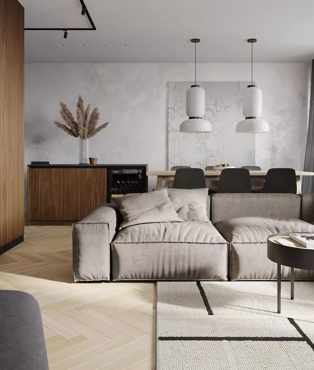 根据装饰材料的不同,墙面饰面常用的材料类型有乳胶漆、壁纸(壁布)、木饰面、瓷砖、石材、软/硬包、PU墙板、不锈钢蜂窝板、艺术玻璃、陶瓷薄板等。