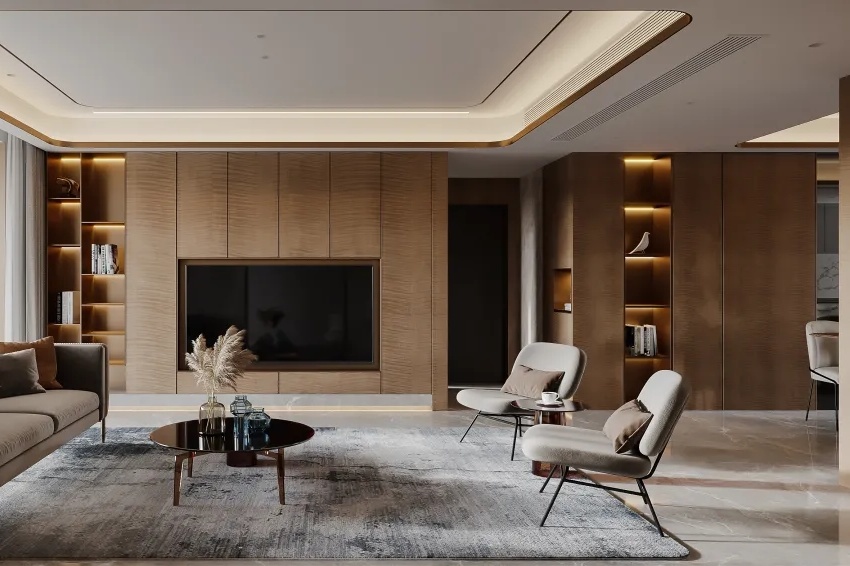 因此,根据装饰材料的不同,顶面吊顶的常见类型主要包括石膏板吊顶、木饰面吊顶、金属吊顶、矿棉板吊顶、硬包吊顶、GRG吊顶、PVC吊顶、软膜天花吊顶、铝塑板吊顶、金银箔吊顶等。