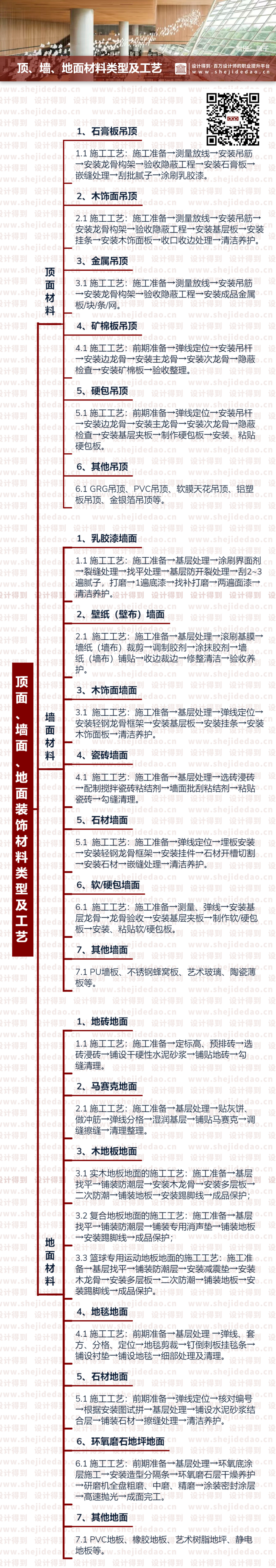 有关顶面、墙面、地面常见的饰面材料类型的内容就先给大家讲解到这里了,有关家装施工材料和工艺细节的,可以直接扫码看下方课程。