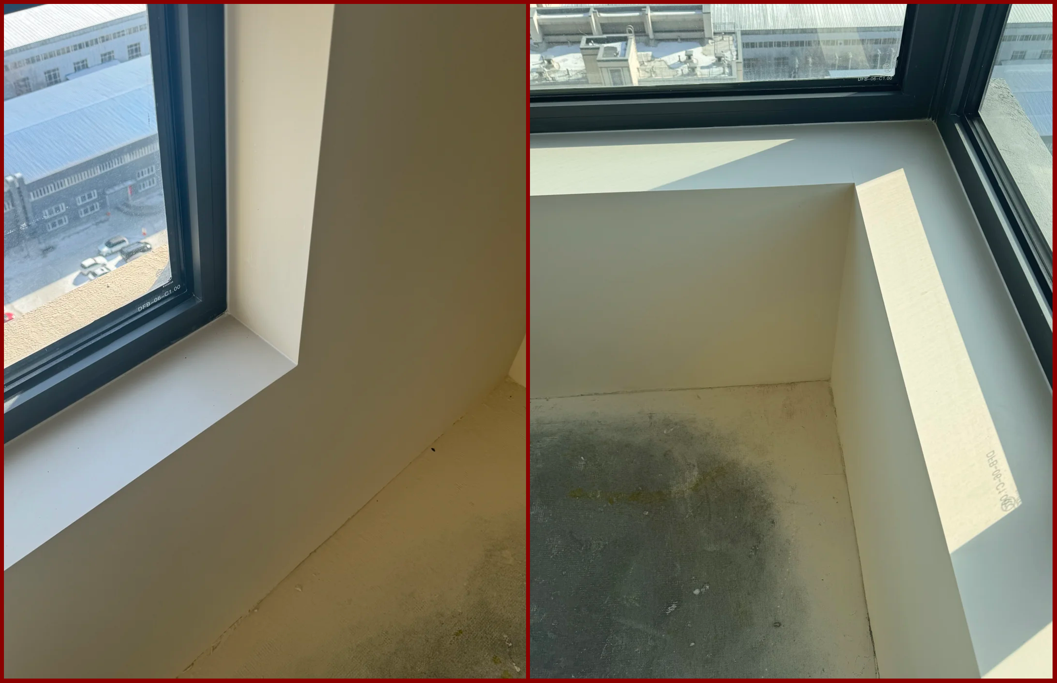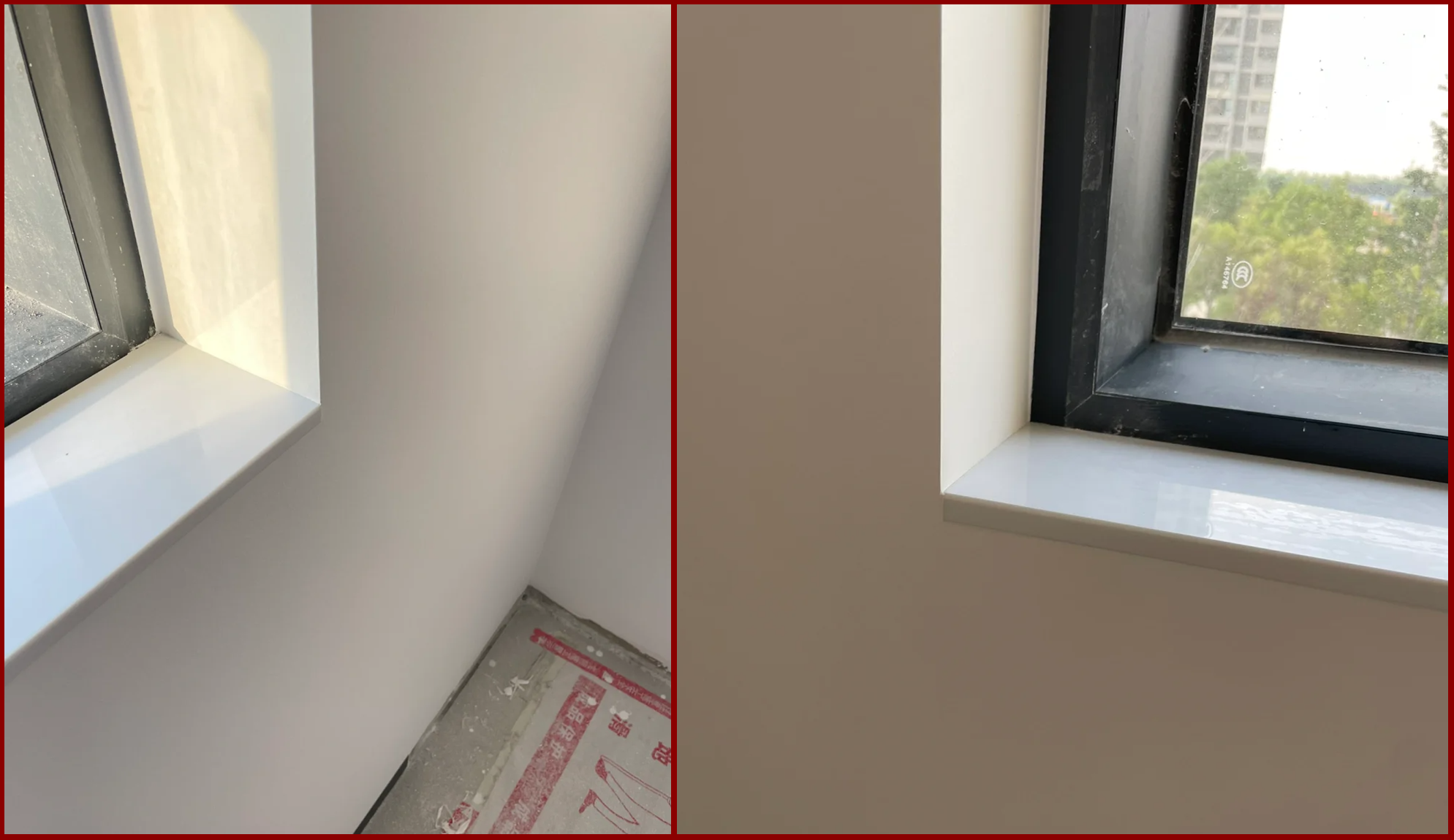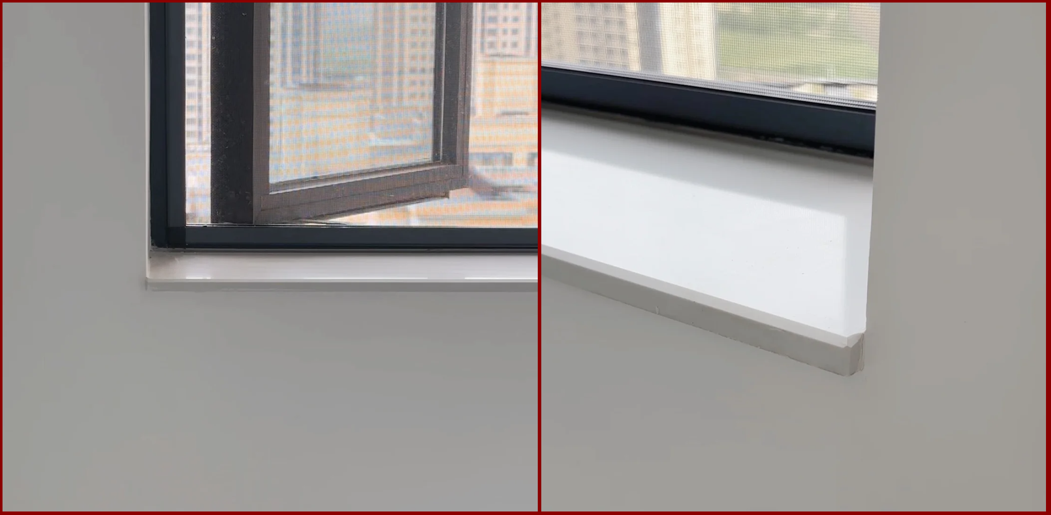 另一种是确定后期会被完全遮盖的情况,直接在油漆上处理,省去窗台石安装。