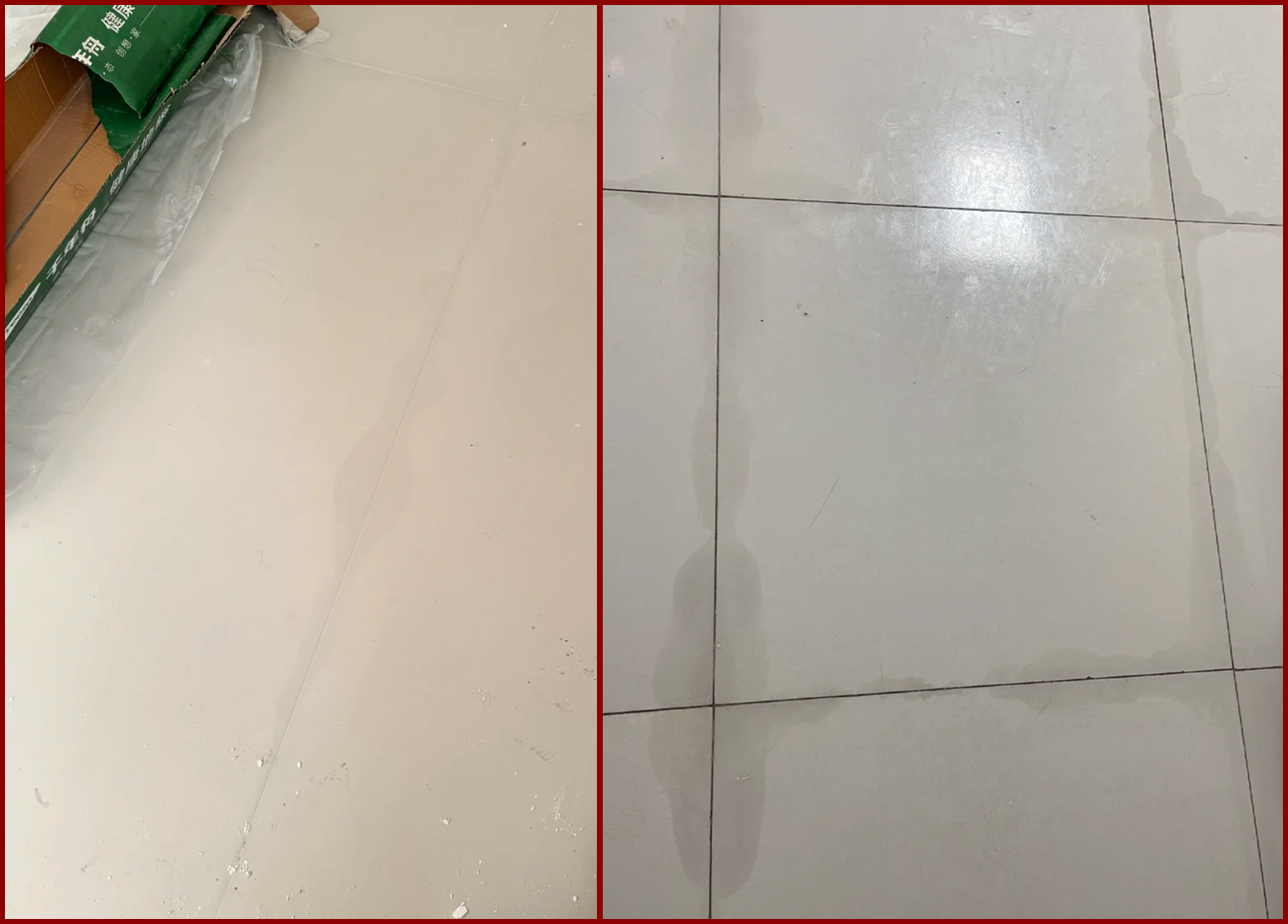b、施工时粘结层水分过多,导致安装过程中地砖被污染。