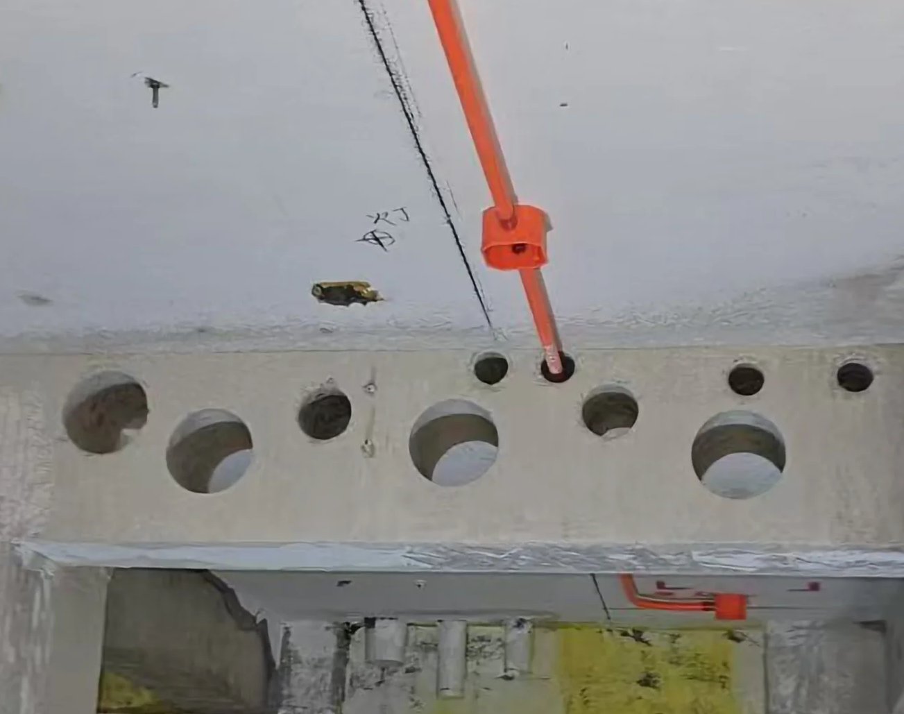 多孔开孔时,应遵循“分散均匀”原则,避免孔洞之间的梁体形成薄弱环节。孔洞过于集中会严重削弱梁的截面刚度,影响整体受力性能。