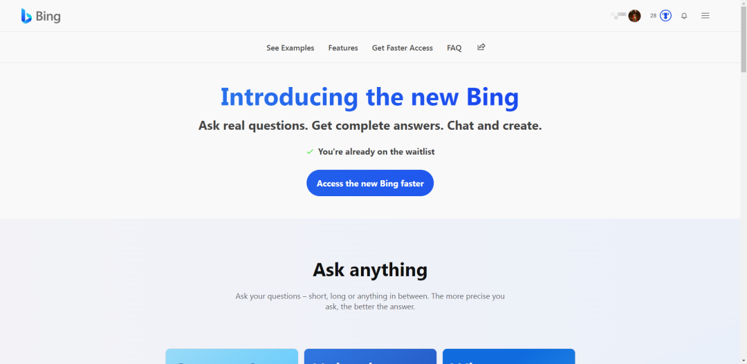④等收到通知就可以体验ChatGPT版本的Bing了。