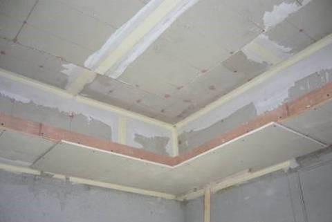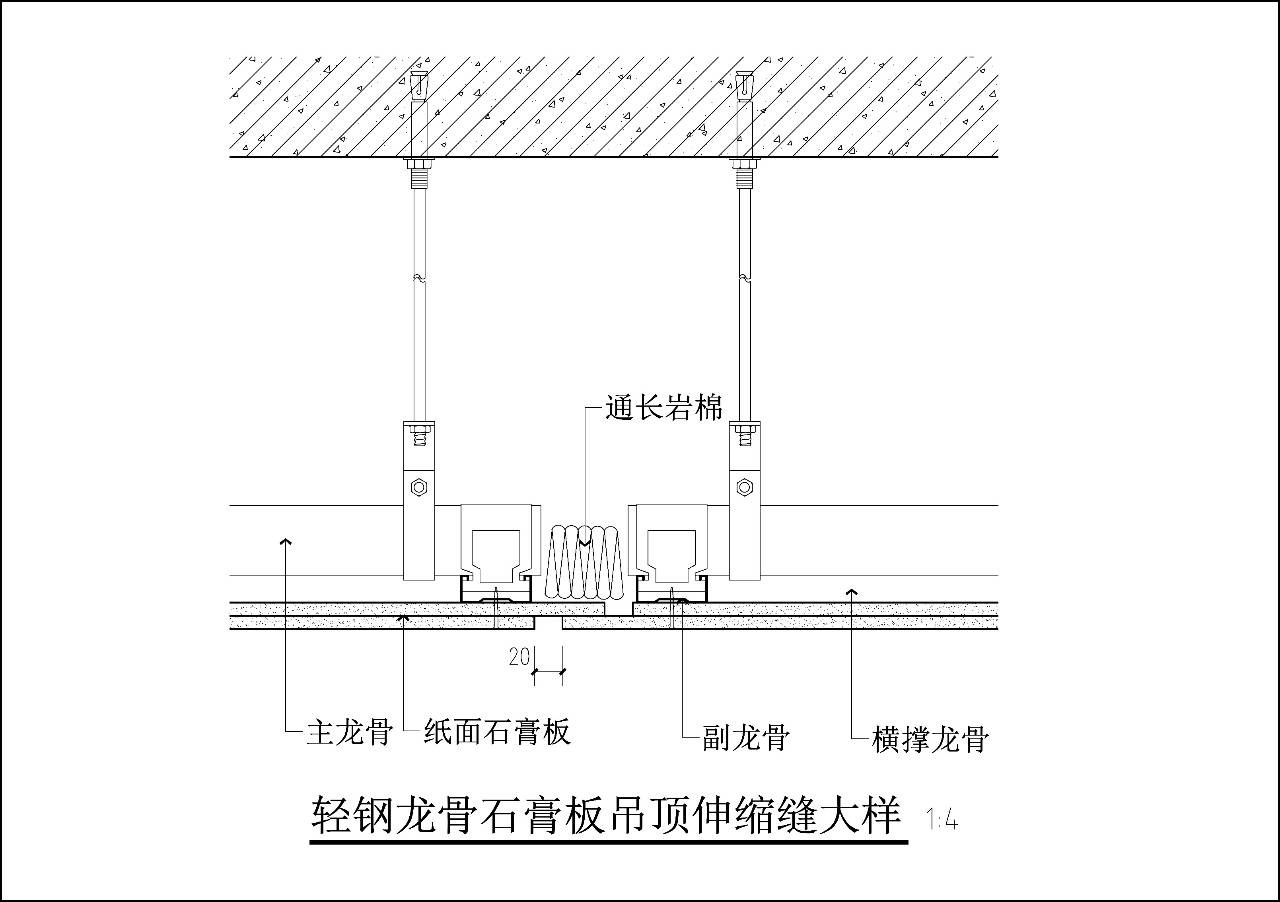 当吊顶长度>12m,或遇到结构伸缩缝时,石膏板天花需要设置伸缩缝。